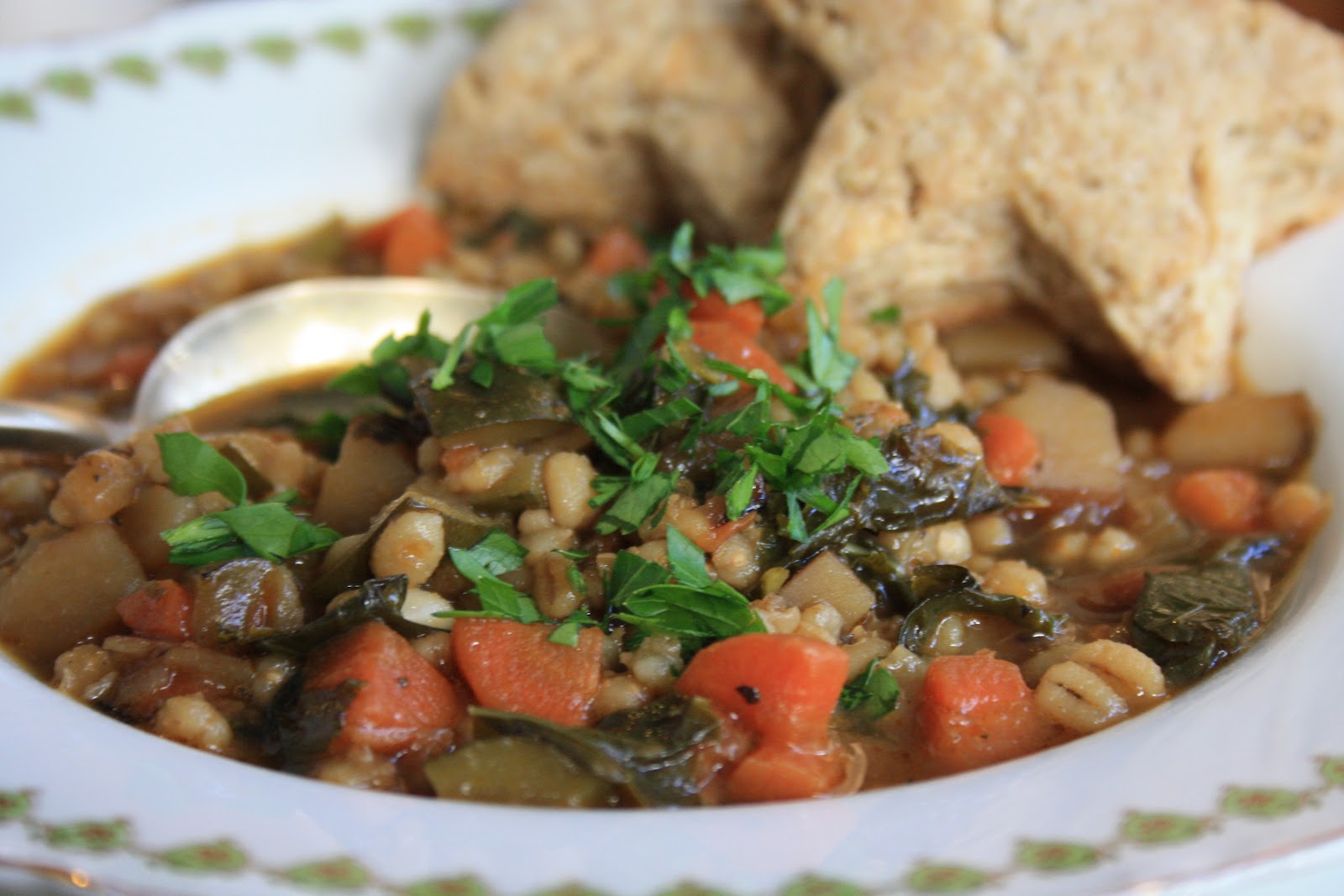 The weather has turned cold so I’m back to craving hearty, warming stews. I suppose this could be a soup if you want to add more broth but on damp, chilly spring days I make it stick-to-your ribs style, thick and full of chewy sweet barley.