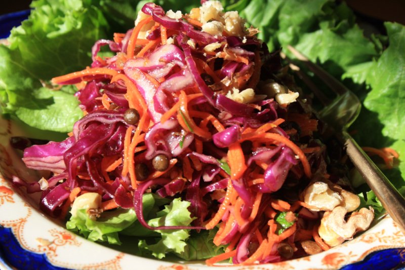 Meatless Monday – carrot cabbage slaw with lentils and orange dressing