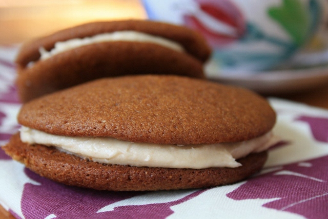 My great grandmother’s soft molasses cookies get an update whoopie-pie style. |