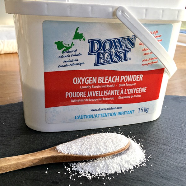 Oxygen bleach softens the water making detergent more effective. It is also safe on colours (won’t leave white patches) so can be used as a stain remover and overall brightener on colored fabric as well. Another benefit is that oxygen bleach doesn’t weaken fabric and it can be safely mixed with other laundry and cleaning products.