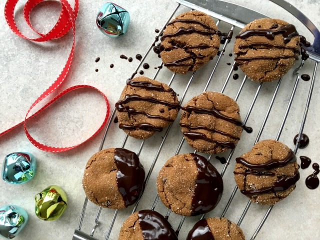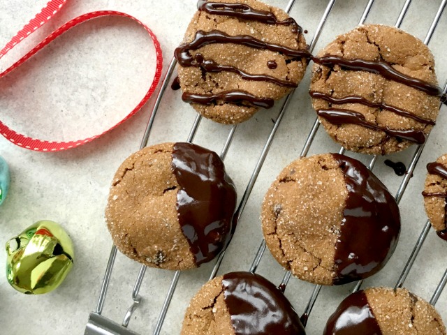 Chocolate gingerbread cookies are festive looking rolled in sugar and dipped in chocolate and they have that wonderful ginger flavour that makes them so perfect for the holidays. The recipe also makes a good amount if you use tablespoon-sized balls of dough.